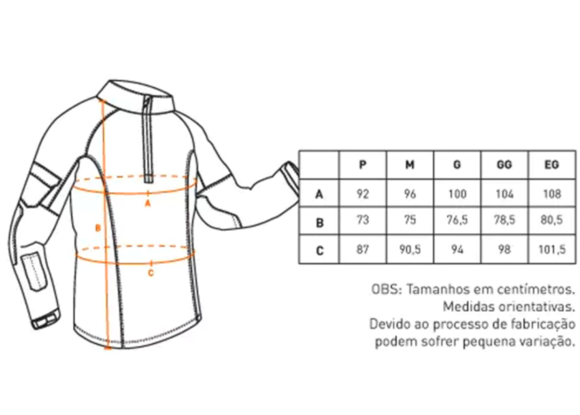 - – Bolsos nas mangas em posição anatômica com tecido aderente para fixação de patches e brasões